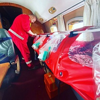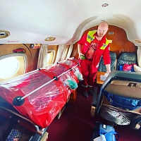 Перелёт осуществлялся индивидуальным медицинским рейсом. В течение транспортировки с соблюдением правил противоэпидемической безопасности пациент находился в изолирующем транспортном боксе (biobag). На протяжении всего полёта проводился мониторинг витальных функций пациента, непрерывная кислородная поддержка, плановая и симптоматическая терапия.